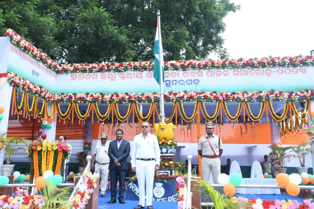 ସୁନ୍ଦରଗଡ଼ : , ୧୬/୦୮: ସ୍ଥାନୀୟ ଶଙ୍କରା ସ୍ଥିତ ରିଜର୍ଭ ପୋଲିସ ପଡ଼ିଆ ଠାରେ ଜିଲ୍ଲା ସ୍ତରୀୟ ସ୍ଵାଧୀନତା ଦିବସ ପାଳିତ ହୋଇଯାଇଛି। ଜିଲ୍ଲା ସ୍ତରୀୟ ଏହି ସ୍ଵାଧୀନତା ଦିବସ ପାଳନ ସମାରୋହରେ ରାଜ୍ୟର ଯୋଜନା ଓ ସଂଯୋଜନ ବିଭାଗ ମନ୍ତ୍ରୀ ରାଜେନ୍ଦ୍ର ଢୋଲକିଆ ମୁଖ୍ୟ ଅତିଥି ଭାବେ ଯୋଗଦେଇ ଜାତୀୟ ପତାକା ଉତ୍ତୋଳନ କରିବା ସହିତ ସମ୍ମିଳିତ ପ୍ୟାରେଡ୍ରେ ଅଭିଭାଦନ ଗ୍ରହଣ କରିଥିଲେ ଏବଂ ଉପସ୍ଥିତ ଜନତାଙ୍କୁ ଉଦବୋଧନ ଦେଇଥିଲେ।