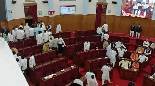ଭୁବନେଶ୍ୱର: ଓଡ଼ିଆ ଅସ୍ମିତା ପ୍ରସଙ୍ଗ ଏବଂ ରାଜ୍ୟପାଳଙ୍କ ପୁଅ ଏଏସଓଙ୍କୁ ମାଡ ମାରିବା ଘଟଣାକୁ ନେଇ ଗୃହ ତ୍ୟାଗ କରିଛନ୍ତି ବିରୋଧୀ ବିଜେଡି ଓ କଂଗ୍ରେସ ।