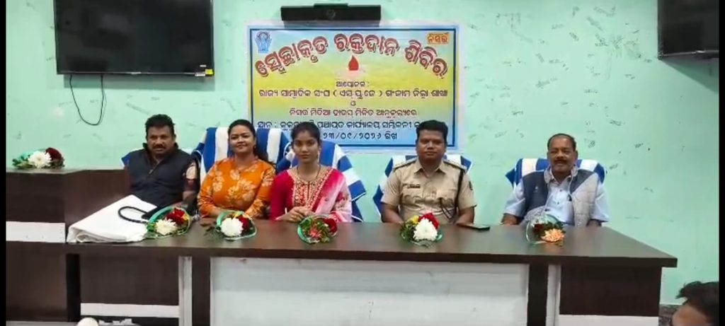 ବ୍ରହ୍ମପୁର (ନିସର୍ତ୍ତ ନ୍ୟୁଜ୍): ମାନବ ସେବା ହିଁ ମାଧବ ସେବା । ଏହି ଉକ୍ତିକୁ ଚରିତାର୍ଥ କରି ବ୍ରହ୍ମପୁର ନିକଟସ୍ଥ କୁକୁଡ଼ାଖଣ୍ଡି ଗ୍ରାମ ପଞ୍ଚାୟତ ପରିସରରେ ଏକ ସ୍ୱେଚ୍ଛାକୃତ ରକ୍ତଦାନ ଶିବିର ଅନୁଷ୍ଠିତ ହୋଇଯାଇଛି। ରାଜ୍ୟ ସାମ୍ବାଦିକ ସଂଘ (ଏସୟୁଜେ) ଏବଂ ‘ନିସର୍ତ୍ତ ମିଡ଼ିଆ ହାଉସ’ର ମିଳିତ ଆନୁକୁଲ୍ୟରେ ଆୟୋଜିତ ଏହି ଶିବିରରେ ସ୍ଥାନୀୟ ଅଞ୍ଚଳର ବହୁ ଉତ୍ସାହୀ ଯୁବକ ସାମିଲ ହୋଇ ରକ୍ତଦାନ କରିଥିଲେ।