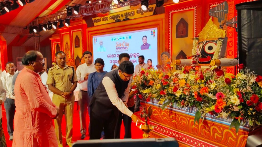 ବ୍ରହ୍ମପୁର : ଓଡ଼ିଶାର ରେଶମ ସହର ବ୍ରହ୍ମପୁରରେ ଶୁଭାରମ୍ଭ ହୋଇଛି ରେଶମ ସହର ମହୋତ୍ସବ ସ୍ଥାନୀୟ ଖଲ୍ଲିକୋଟ ବିଶ୍ଵବିଦ୍ୟାଳୟ ପରିସର ଷ୍ଟାଡିୟମ୍ ଠାରେ ଆଜି ଅପ୍ରେଲ ୬ ତାରିଖରେ ଉଦଘାଟିତ ହୋଇଯାଇଛି l ଏହି ମହୋତ୍ସବ ୧୨ ତାରିଖ ପର୍ଯ୍ୟନ୍ତ ଚାଲିବ l